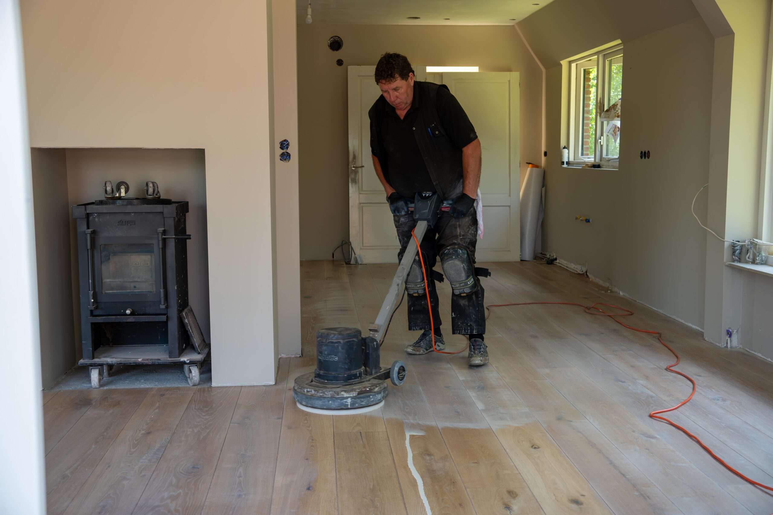 In Harkema hebben wij onlangs een prachtig renovatieproject uitgevoerd waarbij een verouderde houten vloer volledig werd opgeknapt. De vloer is eerst intensief geschuurd om oude lak- en olielagen te verwijderen en het hout weer egaal en schoon te maken. Vervolgens is de vloer behandeld met een hoogwaardige, lichte olie van Rubio Monocoat.
